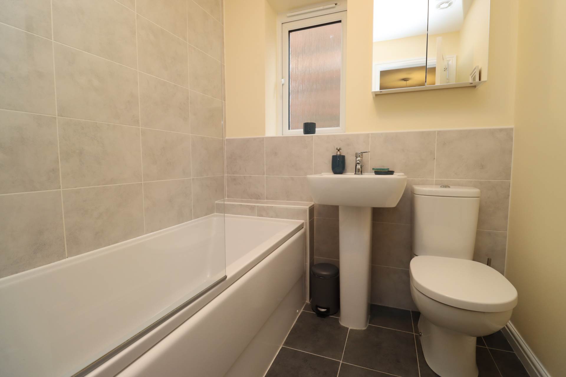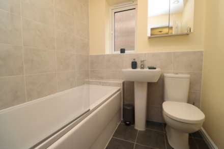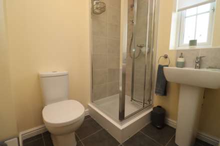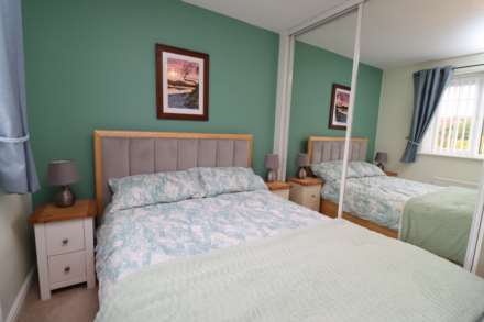The home offers three well-proportioned bedrooms, including a master suite complete with a sleek en-suite shower room. A contemporary family bathroom serves the remaining bedrooms, offering both style and functionality.